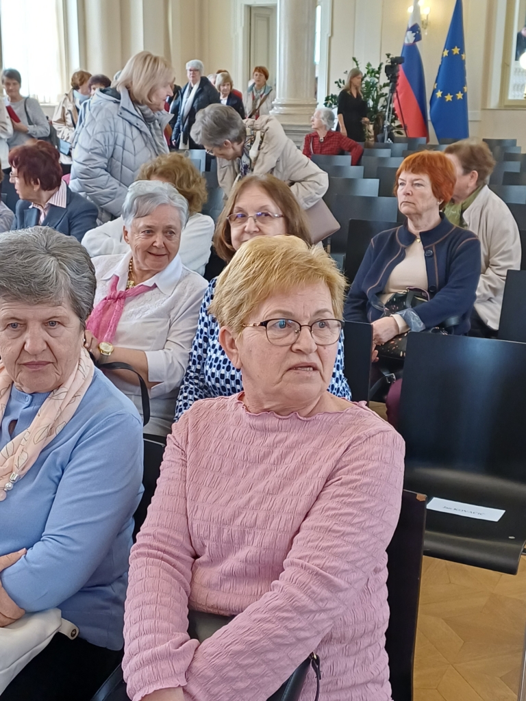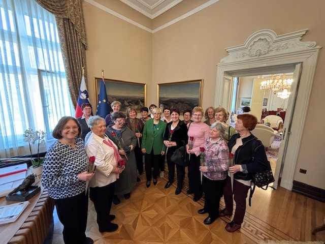 Ob mednarodnem dnevu žensk je predsednica države dr. Nataša Pirc Musar v nedeljo, 8. marca 2026, v Predsedniški palači v Ljubljani sprejela okoli 300 prostovoljk programa Starejši za starejše, ki deluje v okviru Zveze društev upokojencev Slovenije (ZDUS) v vseh slovenskih regijah. V Predsedniški palači potekajo sicer dnevi odprtih vrat ob državnih praznikih, tokrat pa so bila prvič vrata palače odprta posebej za ženske – v znak spoštovanja in hvaležnosti za požrtvovalno in nesebično delo, ki ga kot prostovoljke opravljajo za starejše v naši družbi. Sprejema sta se udeležili tudi dve predstavnici našega društva, in sicer Ljubica Zych, koordinatorica programa Starejši za starejše, ter njena namestnica Dragica Vesković. Za udeležbo na dogodku je ZDUS organiziral prevoz prostovoljk iz vseh pokrajin Slovenije.